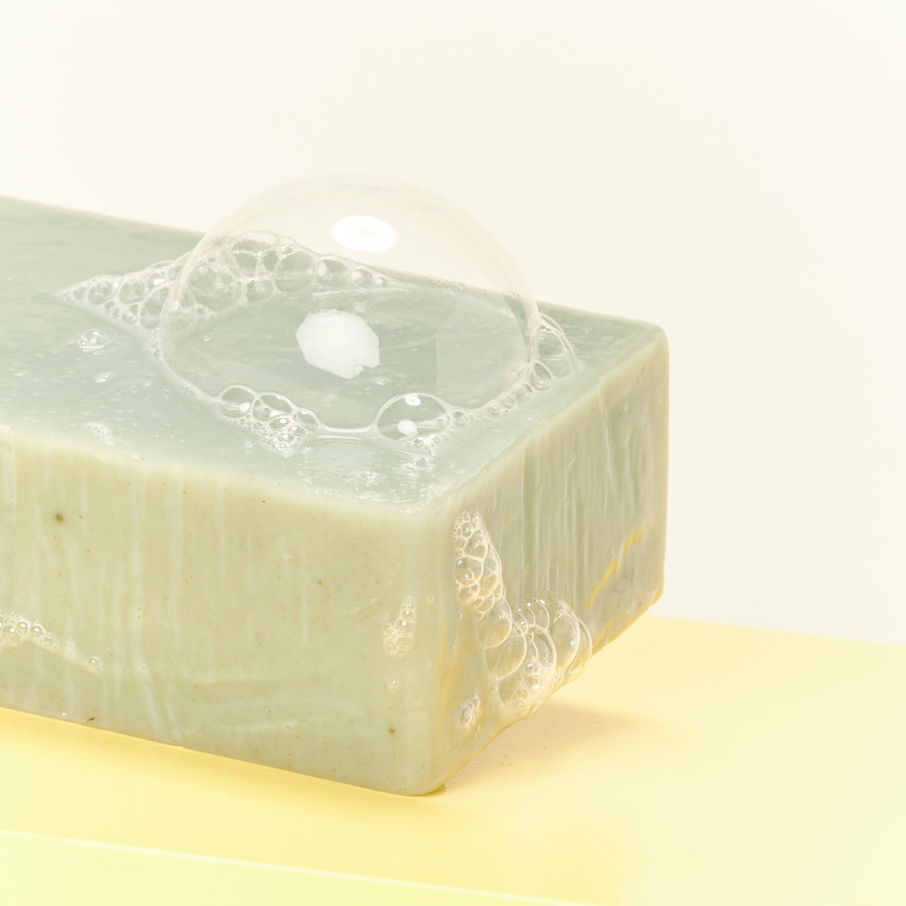 ソープバーを濡らし、手のひらで軽くこすり合わせて泡立て、全身の肌をやさしく洗浄します。